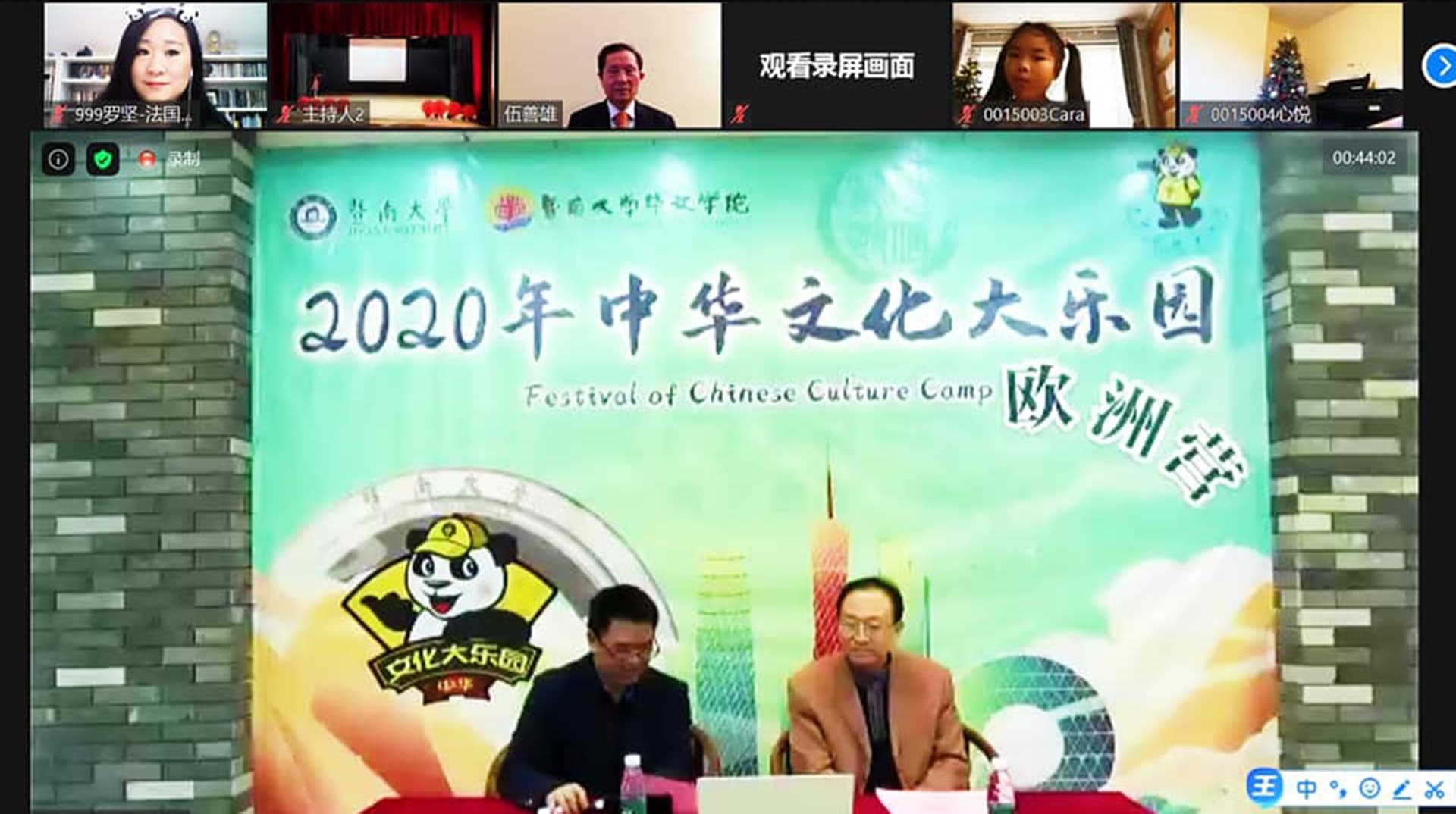 La cérémonie d'ouverture du camp européen en ligne sur le thème "Culture Chinoise" a eu lieu en visioconférence le 19 décembre 2020.